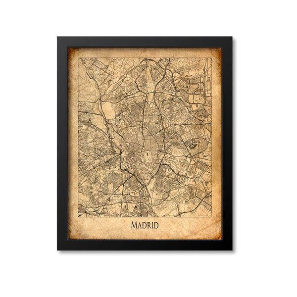 This is a print of the city of Madrid showing the layout of the city streets, lakes, and rivers. This city map art would make an attractive display piece for your home or office. Wonderful gift idea as well.